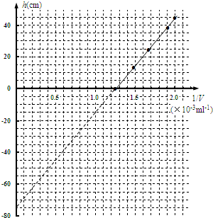 (1)根据表中数据,在右图中画出该实验的h-1/V关系图线;