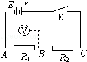 1、选择题 (4分)某学生在研究串联电路电压特点时,接成如图所示电路,接通K后,他将高内阻的电压表并联在A、C两点间时,电压表读数为U;当并联在A、B两点间时,电压表读数也为U;当并联在B、C两点间时,电压表读数为零,则出现此种情况的原因可能是( )(R1、R2阻值相差不大)