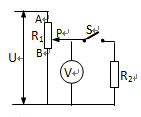 2、计算题 如图所示的电路中,已知U=9V,变阻器的总电阻R1等于150W,R2等于50W,已知滑动变阻器AP段的电阻为100W,求: