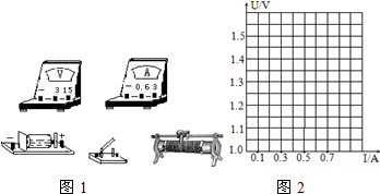 5、简答题 用电流表和电压表测定一节干电池的电动势和内电阻的实验中,所用电流表和电压表的内电阻分别约为0.3Ω和,如图1为所需的器材.