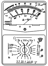 3、填空题 在“练习使用多用电表”实验中,测量电阻时,多用电表选择电阻挡“×100”倍率,若指针偏转角度太大(如图所示),说明选择倍率____________(选填“偏大”或“偏小”),应改选“×____________”倍率。在变换到另一个倍率后,一定要重新____________(选填“机械调零”或“欧姆调零”)。当测量另一电阻时选择“×1”倍率,表针指在欧姆刻度“20”处,则待测电阻阻值为____________Ω。