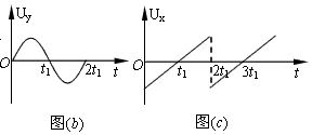 4、选择题 示波管的内部结构如图甲所示。如果在偏转电极XX/、YY/之间都没有加电压,电子束将打在荧光屏中心.如果在偏转电极XX/之间和YY/之间加上图丙所示的几种电压,荧光屏上可能会出现图乙中(a)、(b)所示的两种波形。则