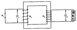 5、选择题 如图是霓虹灯的供电电路,电路中的变压器可视为理想变压器。已知变压器原线圈与副线圈匝数比,加在原线圈的电压为u1=311sin100πt V,霓虹灯正常工作的电阻R=440kΩ,I1、I2表示原、副线圈中的电流下列判断正确的是