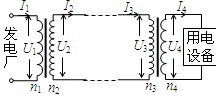 参考答案:B 本题解析:根据 本题难度:一般 3、填空题 如图所示,理想变压器原线圈与10V的交流电源相连,副线圈并联 两个小灯泡a和b,小灯泡a的额定功率为0.3w,正常发光时电阻为30 参考答案:10:3? 0.2A 本题解析:变压器次级电压等于灯泡a两端的电压为 本题难度:一般 4、计算题 某交流发电机输出功率为5×105 W,输出电压为1.0×103 V,已知输电线的总电阻R =" 40" Ω,在输电线上损失的电功率等于输电功率的5%,用户使用电压U="380" V.输电所使用的变压器均为理想变压器。 参考答案:(1)见解析(2) 本题解析:(1)输电线路的示意图如图所示. 本题难度:一般 5、简答题 如图所示,一台有两个副线圈的变压器,原线圈匝数n1=1100,接入电压U1=220V的电路中, 参考答案:(1)变压器电压比等于匝数比U1n1=U2n 2=U3n3,有2201100=6n2=110n3 本题解析: 本题难度:一般 |