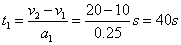参考答案:解:由匀变速直线运动速度公式:v=v0+at,推出:t=(v-v0)/a