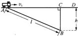 5、简答题 如图所示,一个人站在距离平直公路h=50m远的B处,公路上有一辆汽车以v1=10m/s的速度行驶.当汽车与人相距L=200m的A处时,为了使人跑到公路上时能与车相遇,人的速度至少为多大?此时人应该沿哪个方向运动?