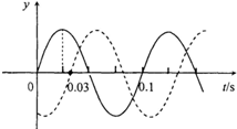 4、选择题 一列简谐横波沿直线传播,该直线上的a、b两点相距4.42m.图中实、虚两条曲线分别表示平衡位置在a、b两点处质点的振动曲线.从图示可知( )