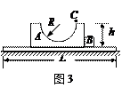 2、简答题 如图3所示,长为L的光滑平台固定在地面上,平台中间放有小物体A和B,两者彼此接触。A的上表面是半径为R的半圆形轨道,轨道顶端距台面的高度为h处,有一个小物体C,A、B、C的质量均为m。在系统静止时释放C,已知在运动过程中,A、C始终接触,试求: