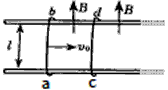 4、计算题 两根足够长的固定的平行金属导轨位于同一水平面内,两导轨间的距离为L,导轨上面横放着两根导体棒ab和cd,构成矩形回路,如图所示,两根导体棒的质量皆为m,电阻皆为R,回路中其余部分的电阻可不计,在整个导轨平面内都有垂直于轨道面竖直向上的匀强磁场,磁感应强度为B,设两导体棒均可沿导轨无摩擦地滑行,开始时,棒cd静止,棒ab有指向棒cd的初速度υ0。若两导体棒在运动中始终不接触,求: