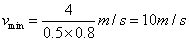 2、计算题 如图所示,将长为1m的导线从中间折成约106°的角,使其所在的平面垂直于磁感应强度为0.5T的匀强磁场。为使导线中产生4V的感应电动势,导线切割磁感线的最小速度约为多大?(sin53°=0.8)