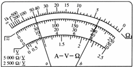 2、简答题 (1)用表盘为如图所示的多用电表正确测量了一个13Ω的电阻后,需要继续测量一个阻值大概是2kΩ左右的电阻.在用红、黑表笔接触这个电阻两端之前,以下哪些操作步骤是必须的?请选择其中有用的,按操作顺序写出:______