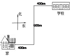 3、填空题 某同学的家到学校的直线距离为1000m,但他从家出发步行到学校,要先向东走400m,然后再向北走600m,最后再向东走400m才能到达学校,如图所示。则他从家到学校的位移大小为?m,走过的路程为??m。