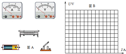 5、填空题 测量电源电动势和内电阻的器材如图A所示,请用实线表示导线,将图中器材连成实验用电路,实验时经测量得出的数据如下表,请在下图B的方格纸上画出U-I图线,利用图线求出电源电动势E=______?V,内电阻r=______Ω