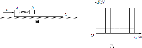 2、简答题 如图甲所示,光滑的水平地面上固定一长为L=1.7m长木板C,板的左端有两小物块A和B,其间夹有一根长为1.0m的轻弹簧,弹簧没有形变,且与物块不相连.已知mA=mC=20kg,mB=40kg,A与木板C、B与木板C的动摩擦因数分别为μA=0.50,μB=0.25,用水平力F作用于?A,让F从零逐渐增大,并使B缓慢地向右移动了0.5m,使弹簧储存了弹性势能EO.问: