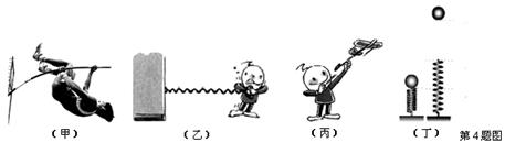 D.如图(丁),小球被弹簧向上弹起的过程中,弹簧的弹性势能
