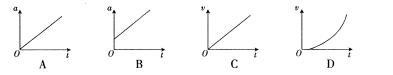 5、选择题 如图所示,在竖直向下的匀强磁场中有两根水平放置的平行粗糙金属导轨CD、EF,导轨上放有一金属棒MN。现从t=0时刻起,给金属棒通以图示方向的电流且电流I的大小与时间t成正比,即I=kt,其中k为常量,不考虑电流对匀强磁场的影响,金属棒与导轨始终垂直且接触良好。下列关于金属棒的加速度a、速度v随时间t变化的关系图象,可能正确的是