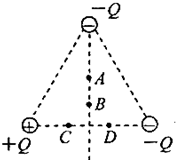 ![]() 参考答案:A、C如图所示,作出电场线,知道Xp处合场强为0,则Q1与Q2在Xp处场强大小相等,方向相反. 本题解析: 本题难度:简单 5、选择题 三个等量点电荷位于等边三角形的三个顶点,电性如图所示,A、B是底边中垂线上的两点,C、D两点在底边上,且与中垂线等距.用EC、ED表示C、D两点场强的大小,用φA、φB表示A、B两点的电势,则( ) |
