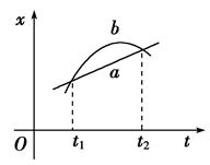 2、选择题 如图所示,直线a和曲线b分别是在平直公路上行驶的汽车a和b的位置-时间(x-t)图线。对图像判断正确的是(?)