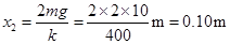 参考答案:整体向上做匀减速直线运动,加速度方向沿斜面向下,则B的加速度方向沿斜面向下.根据牛顿第二定律知,B的合力沿斜面向下,则B一定受到水平向左的摩擦力以及重力和支持力.故C正确,A、B、D错误. 本题解析: 本题难度:简单 3、选择题  三根相同的轻弹簧(不计弹簧自重),每根长度都是10厘米,挂100克重物时都能伸长1厘米,若将三根弹簧串接后挂100克的重物,则三根弹簧的总长度为( ? ) 参考答案:B 本题解析: 本题难度:一般 4、计算题  如图所示,一质量不计的轻质弹簧竖立在地面上,弹簧的上端与盒子A连接在一起,下端固定在地面上。盒子内装一个光滑小球,盒子内腔为正方体,一直径略小于此正方体边长的金属圆球B恰好能放在盒内,已知弹簧的劲度系数k=400N/m,A和B的质量均为 参考答案:(1)x2=0.1m? A=0.2m? (2)(2)方向向下 本题解析:(1)系统处于平衡位置时,弹簧压缩x2 本题难度:一般 5、计算题  240毫米口径的车载多管火箭炮上安装有一种测定风速的装置,其原理如图10所示,一个劲度系数k=120 N/m,自然长度L0=1 m的弹簧一端固定在墙上的M点,另一端N与导电的迎风板相连,弹簧穿在光滑水平放置的电阻率较大的金属杆上,弹簧是由不导电的材料制成的.迎风板的面积S=0.5 m2,工作时总是正对着风吹来的方向.电路的一端与迎风板相连,另一端在M点与金属杆相连.迎风板可在金属杆上滑动,且与金属杆接触良好.定值电阻R=1.0 Ω,电源电动势E=12 V,内阻r=0.5 Ω,闭合开关,没有风吹时,弹簧处于原长,电压表的示数U1=9.0 V,某时刻由于风吹迎风板,电压表的示数变为U2=6.0 V.求(电压表可看做理想电压表) 参考答案:(1)4.5 Ω/m (2)80 N 本题解析:设无风时金属杆接入电路的电阻为R1,风吹时接入电路的电阻为R2,由题意得: 本题难度:一般 |
