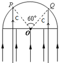 由题,玻璃半球面上只有P、Q之间所对圆心角为60°的球面上有光射出,说明光线在P、Q两点恰好发生全反射,由几何知识得到,光线在P、Q两点的临界角为C=30°.