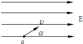 2、选择题 如图所示,一个带电油滴从O点以速度v向右上方射入匀强电场中,v的方向与电场方向成α角,测得油滴到达运动轨迹的最高点P(图中未画出)时,它的速度大小仍为v,则下列说法正确的是( )