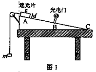 2、实验题 (6分)现要通过实验验证机械能守恒定律。实验装置如图1所示:水平桌面上固定一倾斜的气垫导轨;导轨上A点处有一带长方形遮光片的滑块,其总质量为M,左端由跨过轻质光滑定滑轮的细绳与一质量为m的砝码相连;遮光片两条长边与导轨垂直;导轨上B点有一光电门,可以测试遮光片经过光电门时的挡光时间t,用d表示A点到导轨低端C点的距离,h表示A与C的高度差,b表示遮光片的宽度,s表示A ,B 两点的距离,将遮光片通过光电门的平均速度看作滑块通过B点时的瞬时速度。用g表示重力加速度。完成下列填空和作图;若将滑块自A点由静止释放,则在滑块从A运动至B的过程中,滑块、遮光片与砝码组成的系统重力势能的减小量可表示为?。动能的增加量可表示为?。若在运动过程中机械能守恒,