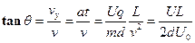 1、计算题 如图所示,U0为加速电场的电压。水平放置的带电平行板形成竖直方向的匀强偏转电场,板间电压为U,两板间距离为d,板的水平长度为L.设有一带电粒子由静止经加速电场加速后,以垂直于偏转电场的方向射入偏转电场,带电粒子的重力不计,粒子的质量为m电荷量为q.求:(1)带电粒子从加速电场射出时的速率(2)带电粒子在偏转电场中的加速度的大小(3)带电粒子离开偏转电场时偏移量y(4)带电粒子离开偏转电场时的偏转角的正切值tanθ。