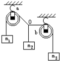 5、选择题 如图所示,3根轻绳的一端分别系住质量为m1、m2、m3的物体,它们的另一端分别通过光滑定滑轮系于O点,装个装置处于平衡状态时,Oa与竖直方向成30°角,Ob处于水平状态,则( )