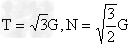 1、选择题 如图所示,一个半径为r、重为G的圆球,被长为r的细绳挂在竖直的光滑的墙壁上,绳与墙所成的角度为30°,则绳子的拉力T和墙壁的弹力N分别是