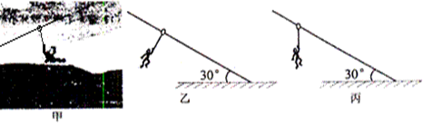 3、选择题 如图甲所示,高空滑索是一项勇敢者的游戏,一个人用轻绳通过轻质滑环悬吊在倾角为θ=30°的足够长的钢索上运动,在下滑过程中可能会出现如图乙和如图丙所示的两种情形,不计空气阻力,则下列说法中正确的是
