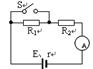 参考答案:解;由图知:R1、R3并联后与R2串联,再与R4并联.等效电路如图.当滑动变阻器的滑臂向a端移动过程中, 本题解析: 本题难度:一般 2、选择题  在已接电源的闭合电路里,关于电源的电动势、内电压、外电压的关系应是(  ) 参考答案:A、如外电压增大,则内电压减小,电源电动势保持不变.故A错误. 本题解析: 本题难度:一般 3、计算题  如图所示,R1=5Ω,R2=9Ω。当开关S断开时,电流表的示数为I=0.2A当开关S闭合时,电流表的示数为 参考答案:E=3V? r=1Ω 本题解析:根据闭合回路欧姆定律可得:E=I(R1+R2)+Ir? ①?(3分) 本题难度:简单 4、选择题  在图所示的电路中,电源的内电阻r=1Ω,外电路电阻R=9Ω,闭合开关后,电流表的示数I=0.3A,电流表的内阻不计。电源的电动势E应等于(?) 参考答案:C 本题解析:略 本题难度:简单 5、选择题  如图所示电路中,电源电动势为E,内阻为r,R1,R2为定值电阻,R3为可变电阻,C为电容器。在可变电阻R3的阻值由较大慢慢变小的过程中 参考答案:A 本题解析:滑动变阻器由大到小的过程中,电路中总电阻减少,由闭合电路欧姆定律可知电路中电流增大,内电压及R1两端的电压增大,则R3两端的电压减少;电容器两端的电压减少,电容器电量减少,故电容器放电,所以通过R2的电流方向由下向上,A对;电容器两端电压变小,场强减少,B错;电容与电压、电量无关,电容不变,C错;电流增大,电源内部消耗的功率由P=I2r,可知,功率增大,D错。所以本题选择A。 本题难度:一般 |