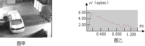 5、计算题 随着我国汽车安全性研究的不断发展和国内汽车碰撞实验水平的提高,有关汽车侧面碰撞安全性的法规也开始准备颁布实施。图甲是清华大学进行侧面碰撞实验的装置图,图乙由是传感器得到的速度图象,若将汽车从最大速度开始看作是匀减速直线运动,则汽车侧面碰撞时的加速度大小为大小?减速运动的位移为多少?