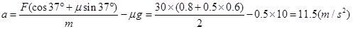 (2)用大小为30N,与水平方向成37°的力斜向上拉此物体,使物体从A处由静止开始运动并能到达B处,求该力作用的最短时间t。