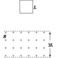 4、计算题 (15分)如图所示,一正方形线圈从某一高度自由下落,恰好匀速进入其下方的匀强磁场区域.已知正方形线圈质量为m,边长为L,电阻为R,匀强磁场的磁感应强度为B,高度为2L,求: