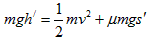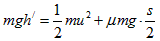 (2)若滑块从h/=5m处下滑到将要与小球碰撞时速度为u,同理有