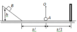 3、计算题 一轻质细绳一端系一质量为m=0.05kg的小球A,另一端挂在光滑水平轴O上,O到小球的距离为L=0.1m,小球跟水平面接触,但无相互作用,在球的两侧等距离处分别固定一个光滑的斜面和一个挡板,如图所示,水平距离s=2m。现有一滑块B,质量也为m,从斜面上滑下,与小球发生碰撞,每次碰后,滑块与小球速度均交换,已知滑块与挡板碰撞时不损失机械能,水平面与滑块间的动摩擦因数为μ=0.25,若不计空气阻力,并将滑块和小球都视为质点,g取10m/s2,试问: