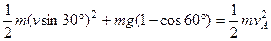 2、简答题 如图4-1所示:摆球的质量为m,从偏离水平方向30°的位置由静释放,设绳子为理想轻绳,求小球运动到最低点A时绳子受到的拉力是多少?