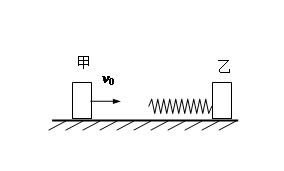 5、计算题 如图所示,光滑水平面上停着一个质量为M的木块乙,乙上固定着一轻质弹簧,另一个质量为m的木块以速度为