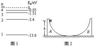 3、简答题 (1)图1为氢原子能级的示意图,现有大量的氢原子处于n=4的激发态,当向低能级跃迁时辐射出若干不同频率的光.关于这些光下列说法正确的是