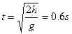 ,平抛运动时间为: