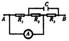 5、选择题 如图所示电路,A、B两点间接上一电动势为4V、内电阻为1?的直流电源,3个电阻的阻值均为4,电容器的电容为30?F,电流表为理想表,那么,电容器所带的电量、电流表的读数分别是( )