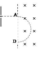 4、计算题 (供选学物理3-1的考生做)(8分)如图所示,质量为为m、电量为q的带电粒子,经电压为U加速,又经磁感应强度为B的匀强磁场后落到图中D点,求: