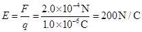 2、计算题 已知一带负电的试探电荷电量为-1.0×10-6 C,置于电场中的A点,受到竖直向下的电场力,大小为2.0×10-4N,