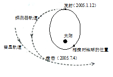 2、选择题 北京时间2005年7月4日下午,美国探测器成功撞击“坦普尔一号”彗星,并投入彗星的怀抱,实现了人类历史上第一次对彗星的“大碰撞”,如图所示.设“坦普尔一号”彗星绕太阳运行的轨道是一椭圆,其运行周期为5.74年,则下列说法中正确的是( ?)