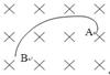 5、选择题 如图所示,做直线运动的电子束射入与它的初速度垂直的匀强磁场中,电子在磁场中运动时:
