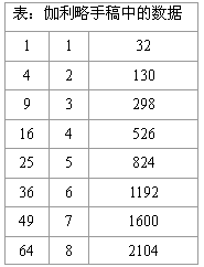 4、填空题 在伽利略羊皮纸手稿中发现的斜面实验数据如下表所示,人们推测第二、三列数据可能分别表示时间和长度。伽利略时代的1个长度单位相当于现在的
