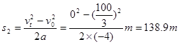 ![]() 参考答案:OA过程是自由落体,A的坐标就是h,加速度为g,所以B正确,A错误. 本题解析: 本题难度:简单 3、计算题 (10分) 为了安全,在公路上行驶的汽车之间应保持必要的距离。已知某高速公路的最高限速为v=120km/h,假设前方车辆突然停止,后车司机发现这一情况操纵刹车,到汽车开始减速反经历的时间(即反应时间)t=0.50s。刹车时加速度大小是4m/s2,该高速公路上汽车间的距离s至少应为多少? 参考答案:155.6m 本题解析:汽车最高限速为: 本题难度:简单 4、简答题 质量为50kg的木箱放在水平地面上,受到75N的水平拉力而开始运动,该力作用4s后撤去,已知木箱与地面间的动摩擦因数为0.1,试求:? 参考答案:(1)物体所受摩擦力为: 本题解析: 本题难度:一般 5、简答题 汽车以v0=10m/s的速度在水平路面上匀速运动,刹车后经2秒速度变为6m/s,求:刹车后8秒内汽车前进的距离和汽车停下来前最后2s内运动的位移. 参考答案:(1)根据加速度的定义式得:a=△v△t=6-102m/s2=-2m/s2 本题解析: 本题难度:一般 Better to ask the way than go astray. 问路总比迷路好. |