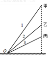 根据数学知识得知,sin2×60°=sin2×30°,则甲和丙运动的时间相等,同时达到斜轨道的底端O点.