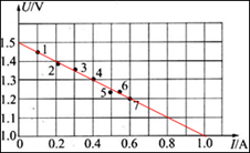 ![]() (2)(2分)如图所示的U-I图上是由实验测得的7组数据标出的点,请你完成图线,并由图线求出ε=________V,r=________Ω. ![]() (3)(2分)若只选用两组数据,用闭合电路欧姆定律算出ε、r,有可能误差较大.若选用第 ________和第________组数据误差最大. 参考答案:(1)见下图? 本题解析:(1)在实验的过程中,为了调节方便滑动变阻器要选R1,电路中的开关要能控制整个电路,具体电路图见答案。 本题难度:一般 3、填空题 某同学测量一只未知阻值(大约为1000Ω)的电阻。 参考答案: 本题解析:待测电阻阻值与电压表阻值接近,电压表的分流作用显著,所以要用电流表的内接法,变阻器阻值为50Ω,为了便于调节要用分压式接法; 本题难度:简单 4、实验题 有一个小灯泡上标有“3V 0.2A”字样,现要测量该灯泡的伏安特性曲线,有下列器材可供选用:? 参考答案:(1) A、C、E? 本题解析:(1)描绘伏安特性曲线实验中滑动变阻器需要采用分压式连接,灯泡额定电压为3V,所以电压表选择A,额定电流为0.2A,电流表采用C,滑动变阻器选用电阻较小的E(2)本实验要求多组数据,滑动变阻器采用分压式连接(3)电压越大电阻越大,C对; 本题难度:一般 5、实验题 发光晶体二极管是用电器上做指示灯用的一种电子元件。它的电路符号如图(甲)所示,正常使用时,带“+”号的一端接高电势,带“-”的一端接低电势。某同学用滑动变阻器改变阻值的方法用伏特表和毫安电流表测得二极管两端的电压UD和通过它的电流I的数据,并记录在表中: 参考答案:(1) 本题解析: 本题难度:困难 In every beginning think of the end. 凡事一开始就要想到结果. |