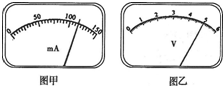 F.阻值为0~10Ω,额定电流为2A的滑动变阻器; G.蓄电池6V; H.开关一个,导线若干. ![]() ![]() (3)在答题卡的方框内画出符合要求的实验电路图. 参考答案: 本题解析:略 本题难度:一般 3、计算题 (8分)(1)画出欧姆表电路原理图,并标出红,黑表笔的位置。 参考答案:见解析 本题解析:第(1)小题共3分,其中红,黑表笔标注出得1分。 本题难度:简单 4、填空题 用伏安法测电阻时,电路中的电流表、电压表的示数如图甲、乙所示.电流表的读数为______,电压表的读数为______. 参考答案:(1)电流表使用的0~150mA量程,每一个大格代表50mA,每一个小格代表5mA,电流为115mA, 本题解析: 本题难度:一般 5、实验题 (18分)(1)在物理实验中,把一些微小量的变化进行放大,是常用的物理思想方法。如图所示的四个实验,运用此思想方法的是?(填相应符号)